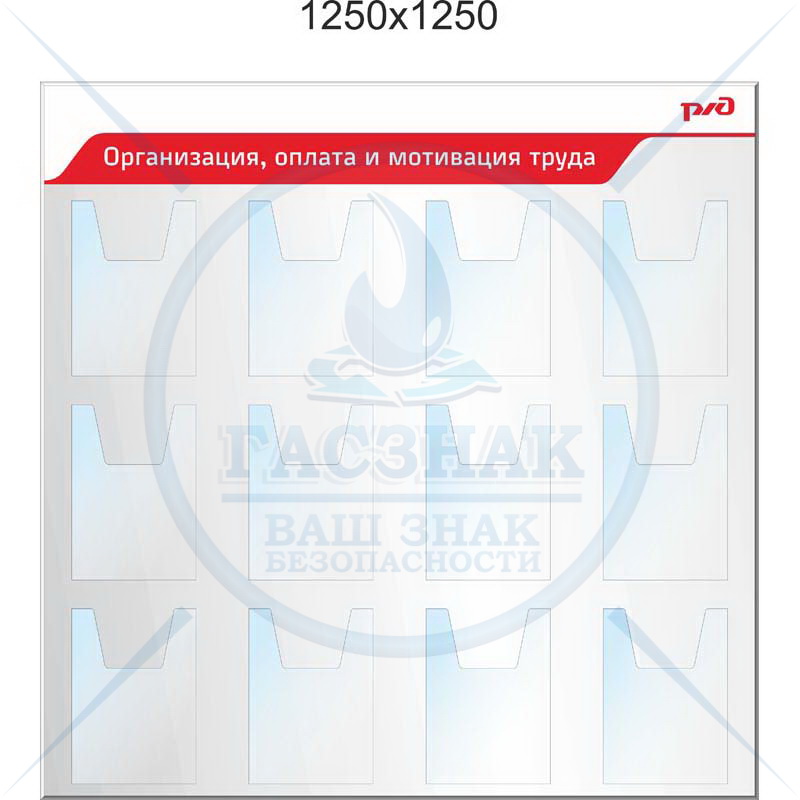 Стенд Первичные средства пожаротушения для ОАО РЖД 3 плаката А3, 2 объемных и 2 плоских объемных кармана А4 (1100х1100; Пластик ПВХ 4 мм; Алюминиевый профиль)